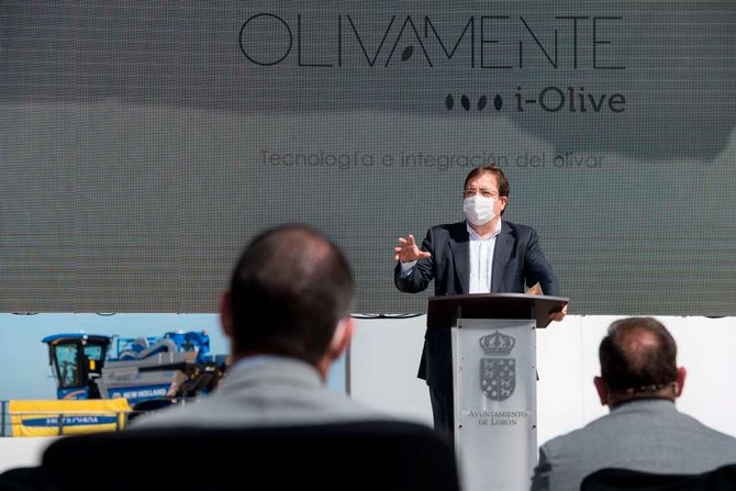 Fernández Vara se ha expresado de esta manera durante su intervención en la inauguración de la almazara “Olivamente”, situada en Lobón y puesta en marcha por la empresa Dalmadel y el técnico en gestión y asesoramiento de explotaciones de olivar superintensivo, Gonzalo Murillo, bajo el paraguas de Grupo Inversor Ecológico Bomar S.L. Un acto al que también ha asistido la consejera de Agricultura, Desarrollo Rural, Población y Territorio, Begoña García Bernal.