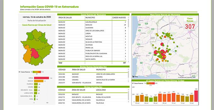 En concreto, los positivos notificados a las 24:00 horas del día 15 de octubre contaban 3 nuevos positivos en Montijo, 8 en Guadiana, 3 en Lobón, 1 en Puebla de Obando, 3 en Pueblonuevo del Guadiana, 3 en La Roca de la Sierra y 1 en Valdelacalzada.