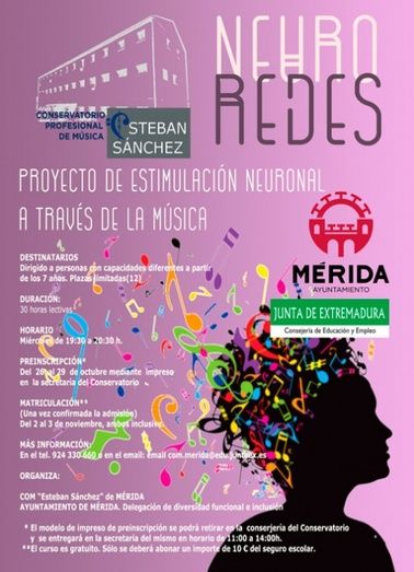 Las delegaciones de Educación y Diversidad Funcional del Ayuntamiento de Mérida vuelven a apoyar, un año más, al Conservatorio Profesional de Música “Esteban Sánchez” en del desarrollo de la quinta edición del programa “NeuroRedes”.