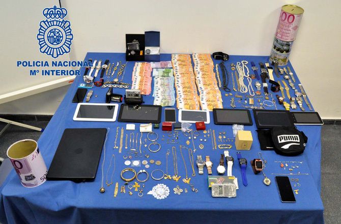 Finalmente, el pasado 29 de octubre se procedió a la detención de estas dos personas y al registro de tres domicilios, donde se intervinieron numerosas joyas denunciadas como sustraídas y un total de 5.400 € en efectivo.