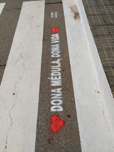 La Asociación para la Donación de Médula Ósea de Extremadura, ADMO, ha realizado un serigrafiado de los pasos de peatones de Puebla de la Calzada con la frase más emblemática de la asociación, para animar a sus habitantes a donar médula ósea.