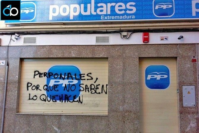 A la vez, desde el PP se ha exigido a la Delegación del Gobierno “que garantice la seguridad de nuestras sedes y militantes, sean de mayor o menor gravedad estos hechos”. Desde el PP se cree que estas pintadas y ataques no se pueden resolver con la categoría de anécdotas “son algo más serio, entre otros motivos porque siempre somos los mismos los que sufrimos los ataques, pedradas o pintadas. No se pueden permitir que comportamientos “indeseables” que no respetan el Estado de Derecho campen a sus anchas por Extremadura, señala Carrón. A la vez, se recuerdan las recientes denuncias efectuadas desde el PP, por la presión política y social, más evidente en las pequeñas poblaciones extremeñas, de la que vienen siendo objeto los candidatos y sedes populares extremeñas.
