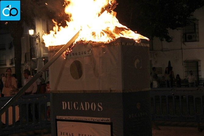La velocidad y la prohibición de fumar en los bares, tema de la falla alegórica que fue quemada en la noche del 12 de junio en la Plaza de España