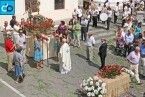 Durante el recorriendo, repleto de juncias y pétalos de flores, la custodia se fue parando en todos los altares que se habían instalado con este motivo, siempre acompañada por la banda de música, niños de Primera Comunión y unos fieles que la siguieron con el máximo respeto.