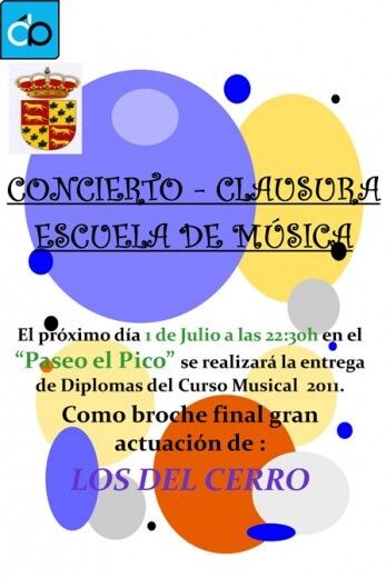 El 1 de julio, a las 213:330 h. se clausura la Escuela de Música de Lobón, en el “Paseo del Pico”, con la entrega de Diplomas del Curso Musical 2011.