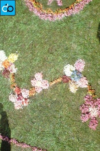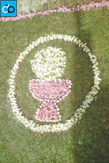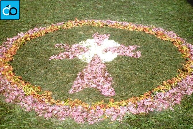 Un año más miembros de la Comunidad Parroquial de San Gregorio Ostiense, de Montijo, han diseñado su tradicional alfombra de flores para adornar el recorrido de la procesión del día del Corpus Christi.