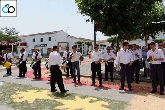 El domingo 26 de junio se celebró la festividad del Corpus Christi. Un año más la Plaza Mayor de Guadiana del Caudillo, se engalanó con los pendones, altares y las alfombras hechas con sal. Se utilizaron más de 2.000 kilos de sal, serrín, césped, pétalos de flores y juncia.