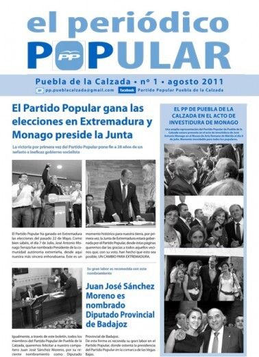 El Partido Popular de Puebla de la Calzada ha publicado el número 1 de una nueva publicación “El periódico Popular” en el que informa a sus lectores de la actualidad generada desde el partido.