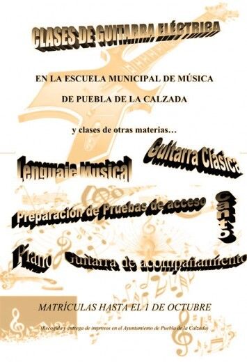 Ya está abierto el plazo de inscripción, hasta el 1 de octubre, de la Escuela de Música de Puebla de la Calzada. La recogida de impresos y entrega de matrículas, tiene lugar en el ayuntamiento de Puebla de la Calzada.