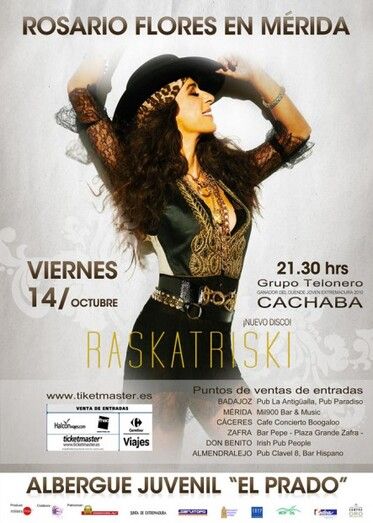 Han transcurrido más de 10 años desde la última visita de Rosario Flores por Extremadura, y coincidiendo con su gira de conciertos del 2011- “Raskatriski”, Rosario vuelve para ofrecerle al público Extremeño, un potente directo donde interpretará algunas de las canciones que ella misma ha compuesto y que están compiladas en este, su último trabajo.
