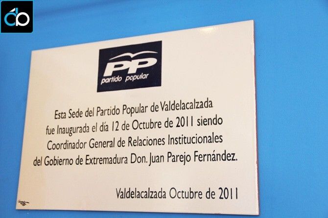 El secretario General Adjunto del PP de Extremadura, Juan Parejo, ha inaugurado el miércoles 12 de octubre, la sede del PP en Valdelacalzada. A la Inauguración asistieron representantes del Partido Popular de las Vegas Bajas, entre los que se encontraban Juan Antonio Morales, Antonio Pozo Pitel y Juan José Sánchez.