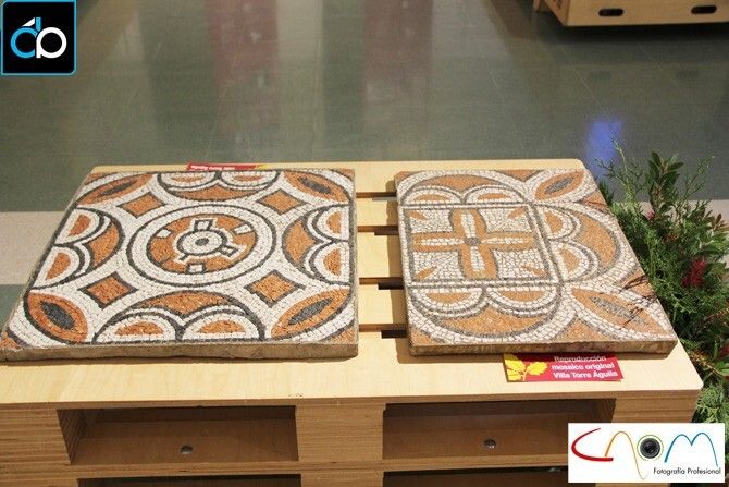 del proyecto, junto a unas reproducciones de mosaicos del yacimiento