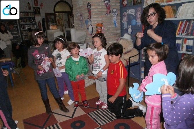 El día 25  y 26 de octubre con los niños de Primaria y Educación Infantil,  se narraron diferentes cuentos, “El Oso Berto”, “Los Murciélagos celebran el día de la Biblioteca”, se utilizaron marionetas y títeres y el cuento  “Ratón de Biblioteca”, se representó con divertidas caretas, participaron los niños  que visitaron, Blanca y Paula colaboraron con Fefi y Elvira, al finalizar se realizaron manualidades con goma eva.