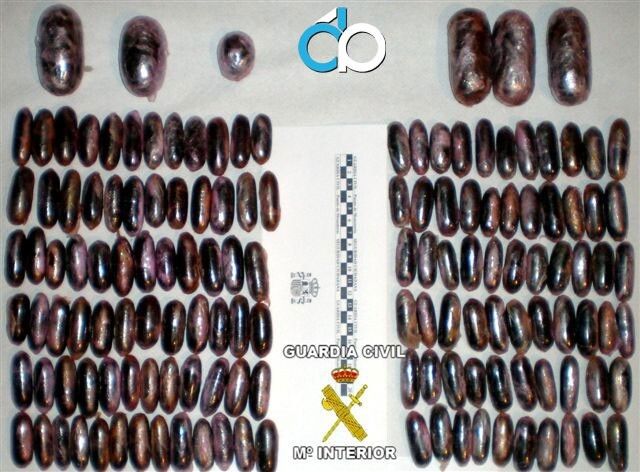 Operación desarrollada  en Monesterio,  donde este pasado mes de agosto, la Guardia Civil interceptó un turismo ocupado por dos vecinos de Palencia, a quienes se les intervino ocultas debajo de los asientos, una  bolsa con 7 bellotas de hachís con restos de heces. Tras detectarles con radiografías la ocultación en sus organismos de cuerpos extraños.