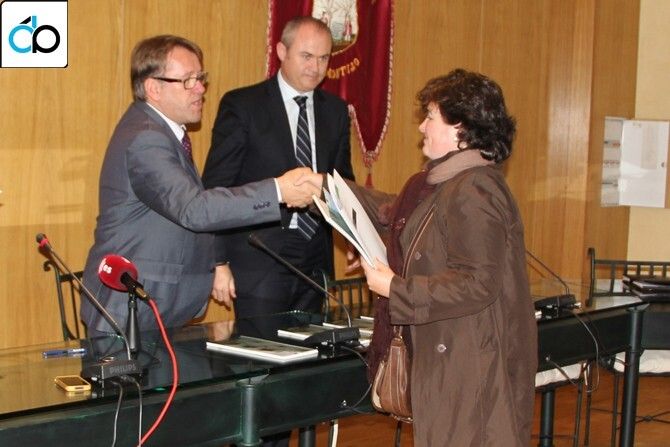 el acto de entrega, que se realizó junto al alcalde de Montijo, Alfonso