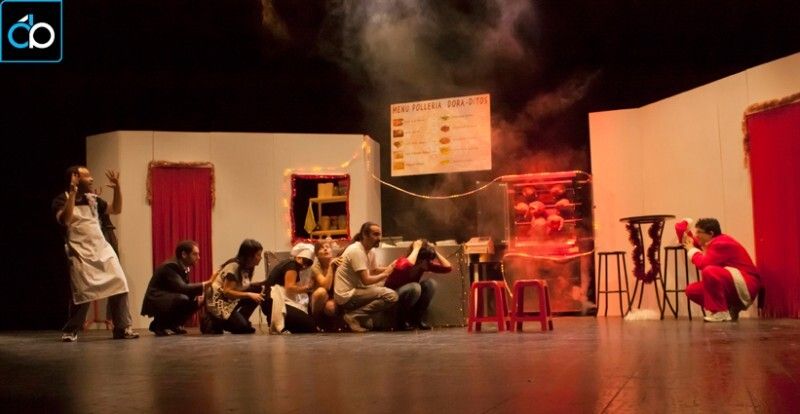 La historia transcurre en una pollería abierta en fin de año,  en la que intervienen un pollero con un plan de comercio  “agresivo”, un ladrón “desesperado” al acecho de cualquier establecimiento abierto para dar su golpe, dos jóvenes actores  “promesa”,  la pollera y la mujer del ladrón, todos se verán involucrados en una encerrona “forzosa”, donde “nadie se imagina dónde acabará”. Se trata de una desternillante comedia “asada” y “lista para servir”.