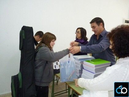 Además, cada alumno de ESO recogió una bolsa con material escolar (folios, libretas, lápices, bolígrafos…), gracias a las ayudas para la adquisición de libros de texto y material escolar concedidas al Instituto.