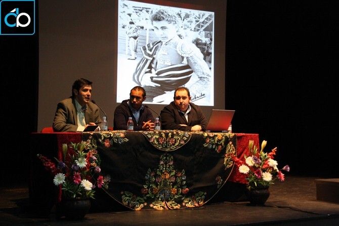 El acto comenzó con una proyección de las mejores imágenes del torero.  Tras la visualización, se dio paso a una charla-coloquio, en la que el homenajeado fue respondiendo a las muchas e interesantes preguntas de Antonio Girol, director de la web “Badajoz taurina”. El torero, con gran soltura, contestaba haciendo un repaso por su trayectoria desde su debut de luces en Santa Amalia en 1992 hasta la actualidad. Entre los momentos más emotivos y principales en la vida del Cartujano no podía faltar la salida a hombros por la Puerta del Príncipe de Sevilla y sus viajes a América.