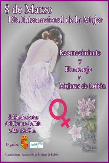 El Ayuntamiento de Lobón a través de la Concejalía de Festejos y con la colaboración de la Asociación de Mujeres de Lobón organiza el 8 de marzo, con motivo del Día Internacional de la Mujer un “Reconocimiento y Homenaje a las Mujeres de Lobón”.