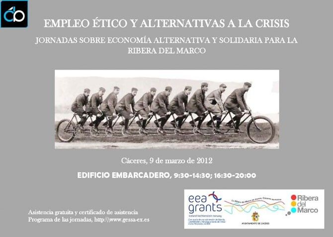 Aplicados de la Universidad de Extremadura (GESSA), ha organizado las Jornadas sobre Economía Alternativa y Solidaria para la Ribera del Marco. Empleo Ético y Alternativas a la Crisis