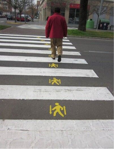 Los pasos de peatones donde se han producido atropellos, estarán señalizados con el dibujo de un peatón detenido, junto al borde de la calzada, aumentando el nº de dibujos, en función del número de atropellos producidos en ese lugar.