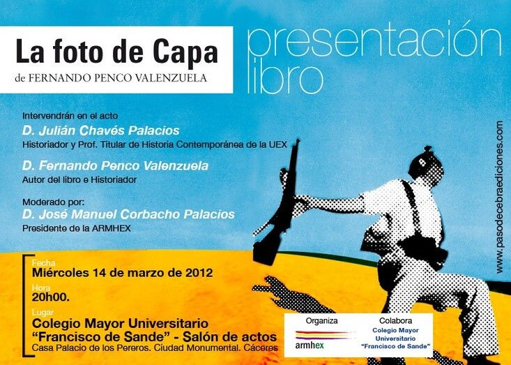 El Miércoles día 14 de marzo de 2012, se presentará en CÁCERES, el libro “LA FOTO DE CAPA”, en un acto organizado por la Asociación para la Recuperación de la Memoria Histórica de Extremadura