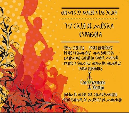 El aula de Piano del Conservatorio Profesional de Música de Montijo organiza la sexta edición del Ciclo de Música Española, que tendrá lugar el jueves 22 de marzo a las 20:30 horas en el salón de actos del conservatorio.