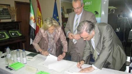 Merino; el director de zona de Extremadura de Bankia, Jorge Torres; y la