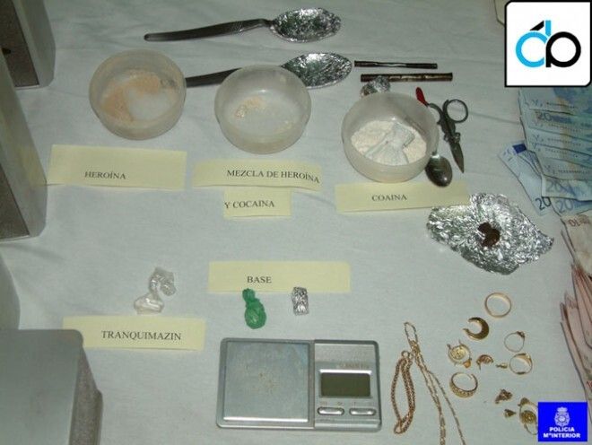 Dichos registros, realizados el pasado día 18 de febrero, por la comisión judicial y funcionarios de la Comisaría del Cuerpo Nacional de Policía de Plasencia, con la colaboración de la Brigada Provincial de Seguridad Ciudadana de la Comisaría Provincial de Cáceres, dieron como resultado la detención de tres varones y dos mujeres, con antecedentes policiales, que responden a las iniciales de R. B. S de 39 años; J. C. G. T. de 29 años; Y. B. H de 45 años; y los hermanos C. M. J. de 25 años y B. M. J. de 22 años así como la intervención de heroína, cocaína y mezcla de ambas con un peso aproximado de 45 gramos, sustancias utilizadas para el corte, útiles para pesaje, mezcla y envoltorio de las sustancias; dos televisores, 716 euros en efectivo y 1 vehículo.
