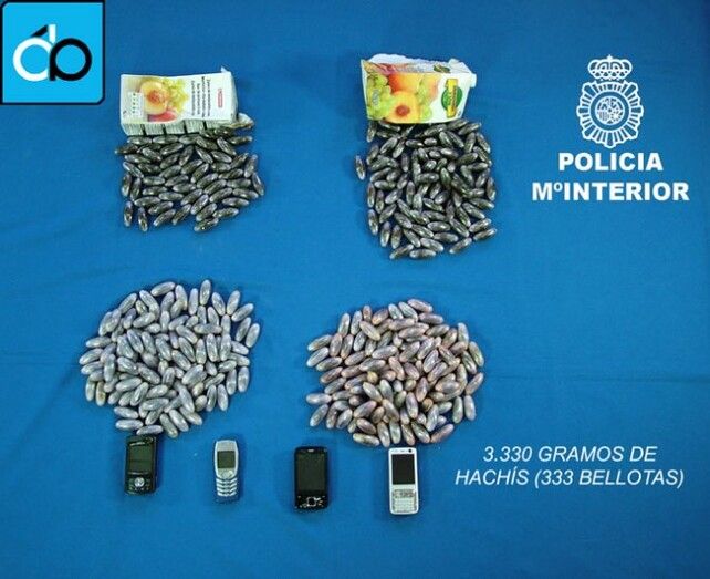 El CNP incauta 333 “bellotas” de hachís, con un peso total de más de 3.330 gramos, que podrían alcanzar en el mercado ilícito un valor de más de 15.580 euros.