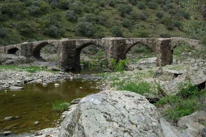 Puente Mocha discurre sobre el río Tamuja, en la Cañada Real de