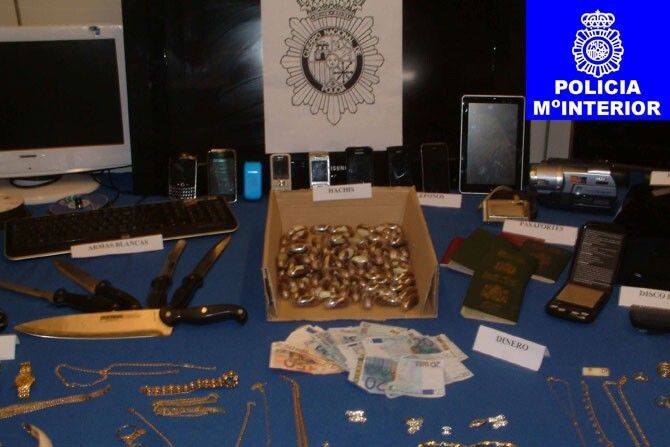 En dicho registro fueron intervenidas múltiples joyas que superaban los treinta mil euros de valor, más de cien bellotas de hachís listas para su venta, diversos aparatos electrónicos, documentación, dinero y dos vehículos que utilizaban para la ejecución y desarrollo de sus actividades.