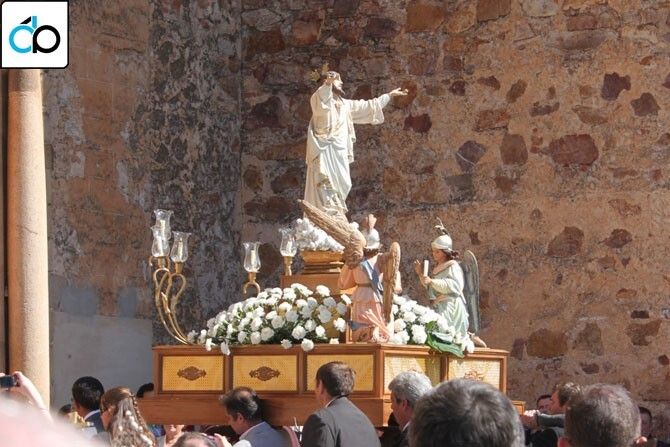 La última procesión de la Semana Santa de Montijo fue la del Domingo de Resurrección, que lo hará a las 11:00 horas desde la iglesia parroquia de San pedro Apóstol, procesión que tuvo su momento especial con el encuentro que las imágenes realizan en la plaza de España.