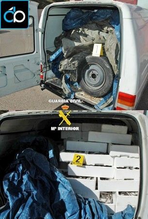 • En un control de carreteras, se interceptó el vehiculo “no isotermo” que transportaba el pescado entre lonas de plástico, neumáticos y cartones.
