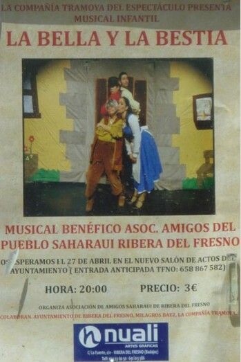 El Musical Infantil: LA BELLA Y LA BESTIA llega a Ribera del Fresno de la mano de la Compañía Tramoya del Espectáculo quienes presentarán éste Musical Benéfico. Colaboran el  Ayuntamiento de Ribera del Fresno, la periodista local Milagros Báez, la Compañía Tramoya Espectáculo y organiza la propia Asoc. Amigos del Pueblo Saharaui.
