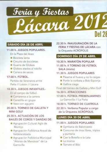 Del 28 de Abril al 1 de Mayo el poblado de Lácara celebra sus Feria y Fiestas con un programa lleno de actividades.