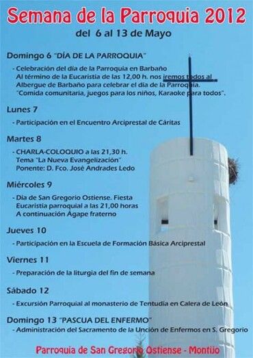 El domingo día 6 de mayo, con la Eucaristía de las 12,00 h., comienza la Semana de la Parroquia San Gregorio Ostiense, de Montijo.