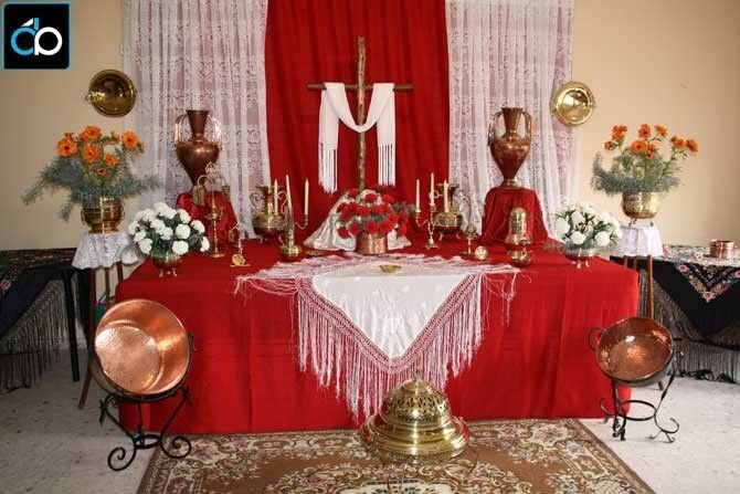 Su decoración la han realizado con un gusto exquisito, en la que no falta de nada: mantones, encajes, flores, objetos de bronce y cofre… convirtiendo la sede de la asociación en un espacio idóneo para levantar un hermoso monumento a la Cruz.