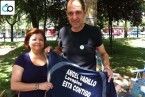 La lucha de Ángel Vadillo sigue sumando apoyos cada día. Una de las más muestras más entrañables que ha recibo hoy ha sido el cariño de los vecinos del barrio madrileño de Lavapiés en forma de obsequio. Ellos han decido mostrarle su apoyo de una forma muy original, han elaborado una camiseta para el primer edil en la que por un lado se podía leer el lema “Ángel Vadillo, Lavapiés está contigo” y por el otro “Si a las renovables en Alburquerque (Extremadura) acompañado de un logotipo de Lavapiés. Un presente por que el Alcalde de Alburquerque está muy agradecido.