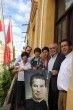 Esta mañana el alcalde, junto al director del colegio y varios alumnos, han colocado un faldón en el Ayuntamiento con la imagen de Don Bosco para invitar a los emeritenses al acto.