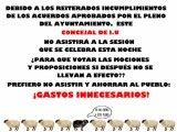 Acevedo propone que se realice un balance del resultado de los acuerdos a los que se ha llegado y cuales de ellos se han puesto en marcha y cuales no. Uno de los ejemplos es el estudio de las cuentas del Teatro Municipal, que se aprobó pero nunca se ha llevado a cabo. El concejal está dispuesto a dimitir si la situación continúa porque considera que los 90 euros que cobra por cada sesión plenaria no sirven para nada, si las cuestiones que se aprueban no siguen adelante.
