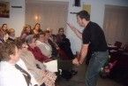 Acto seguido, a las 18´15 h, Domingo López Redondo, Licenciado en Ciencias del Deporte y técnico salud-deportivo del Programa “Extremadura en Forma” de la Junta de Extremadura expuso  la terapia de la actividad física en enfermos de Alzheimer, el cual de una manera práctica se centró en el tipo y características de la actividad física, indicando lo adecuado para cada una de las fases de la enfermedad de Alzheimer, incidiendo mucho en la orientación, el ejercicio óculo-manual, el equilibrio y la flexibilidad entre otros.