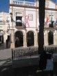 Alumbrado del Ayuntamiento de Montijo y lazo en la fachada con motivo del Cáncer de mama