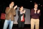 Isabel Gil Rosiña, Juan Antonio González y Juan Mari Delfa en el acto de campaña del PSOE en Puebla de la Calzada