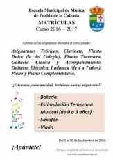 La Escuela de Música de Puebla de la Calzada abre el plazo de matriculación para el curso 2016-2017. Los interesados en inscribirse pueden hacerlo hasta el 30 de septiembre.