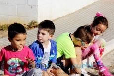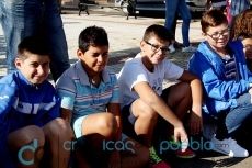 Los escolares de los centros educativos de Puebla participaron del descubrimiento de la placa que conmemora la declaración de Puebla de la Calzada en 2015 como "Pueblo Solidario con el Alzheimer".