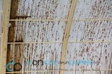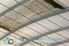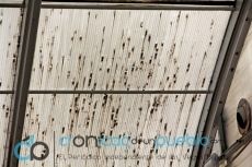 La cubierta de la Piscina Municipal de Montijo, recinto climatizado para poder realizar cursos y natación de invierno, tanto de manera recreativa, como deportiva o por motivos de salud como parte de una terapia dirigida a diversos colectivos, realmente está en mal estado. No solo es la suciedad que se ve de manera clara en la misma y que no puede limpiarse al estar entre las dos capas que conforman las planchas de la propia cubierta, sino que está muy agujereada e incluso levantada por algunos bordes de éstas planchas aislantes que conforman la cúpula. El calor que debe tener la Piscina en esta zona, para que los usuarios no pasen frío, no se mantiene y acaba saliendo hacia el exterior. “Antes pasabas calor esperando a los niños con ropa de calle, nos manifiestan algunos padres, y ahora no te sobra mucha ropa”. “Mi hija dice que no quiere venir a natación, que pasa frío. Salen tiritando y con los labios azulados”.