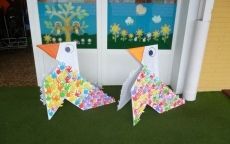 Los pequeños usuarios de la Guardería Municipal de Puebla de la Calzada se sumaron a la celebración con la realización de dos palomas adornadas con la forma de las palmas de sus manos que recortaron y colorearon con la ayuda y supervisión de sus cuidadoras.
