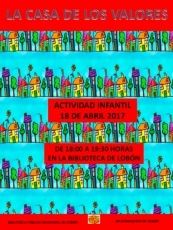 El 18 de abril tendrá lugar de nuevo la actividad “La casa de los valores”, que aúna la lectura y la educación en valores para el público infantil. El horario de esta actividad es también de 18:00 a 19:30 horas.