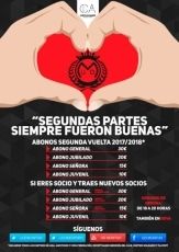 Por otro lado, también informan desde el club que ya están a la venta los abonos para la segunda vuelta de esta temporada 2017/2018, con precios muy asequibles y con obsequios para aquellos socios que traigan nuevos socios al club.